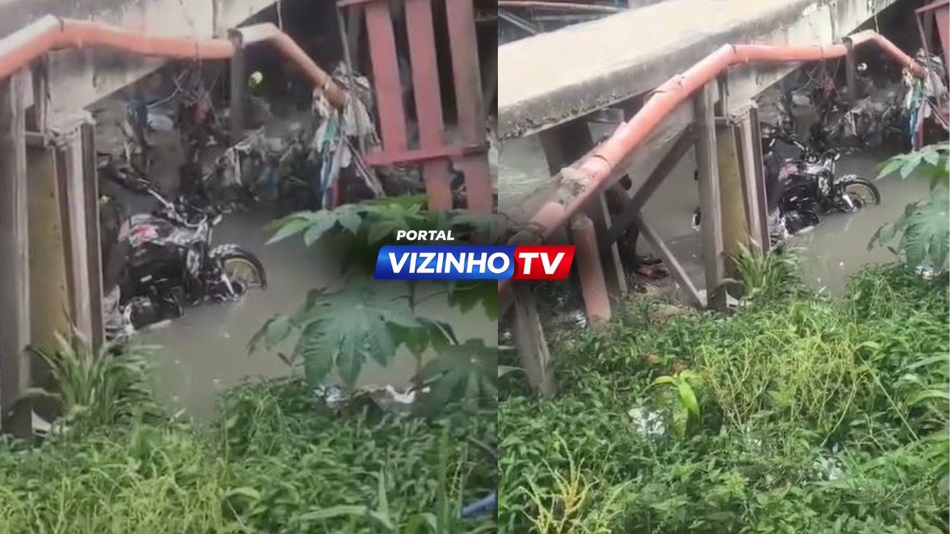 Moto da Rocam cai dentro de igarapé durante ação policial na zona Leste de Manaus; veja vídeo