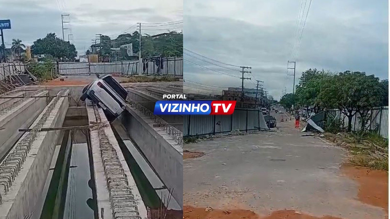 Motorista perde controle, invade obra e carro fica cravado em estrutura de concreto na zona Leste de Manaus; veja vídeo
