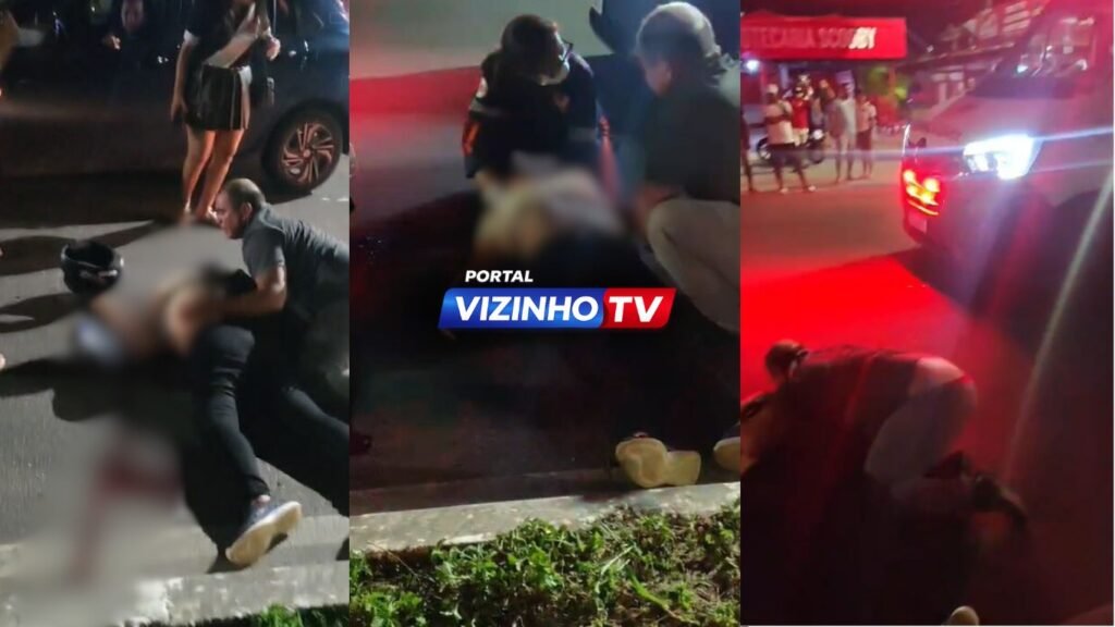 Imagens gravadas por testemunhas mostram os momentos dramáticos logo após a colisão. Maria Regina aparece caída no meio da pista, com intenso sangramento na região da cabeça, enquanto moradores e motoristas que passavam pelo local tentam prestar socorro. O clima no local era de tensão e comoção.