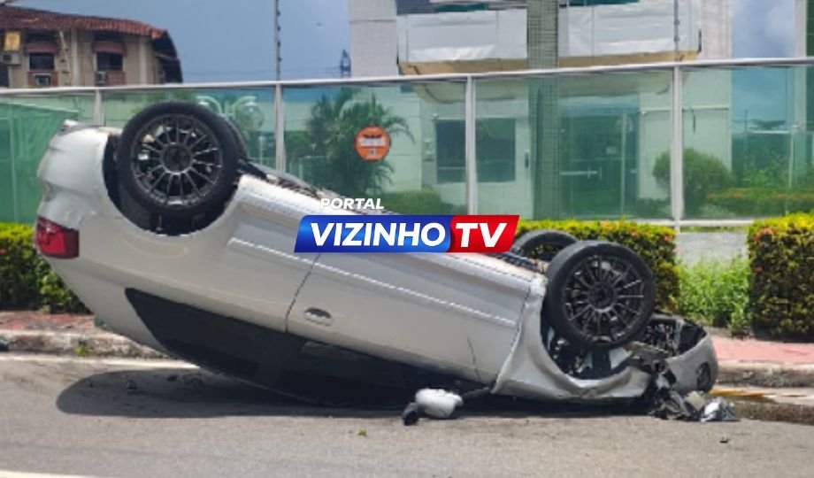 Acidente entre carros deixa veículo capotado no Parque 10 de Novembro em Manaus
