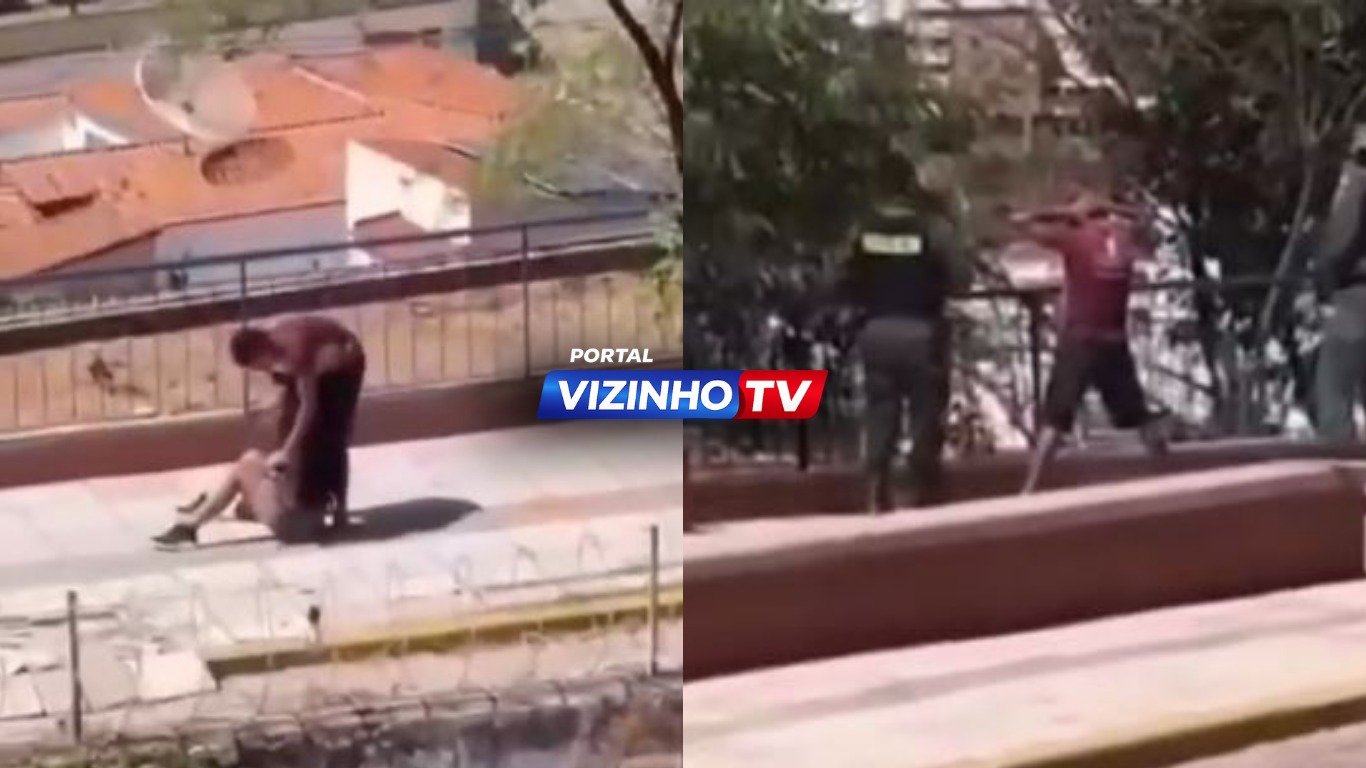 Vídeo mostra tarado tentando arrastar mulher para matagal para estupr4-la; veja vídeo