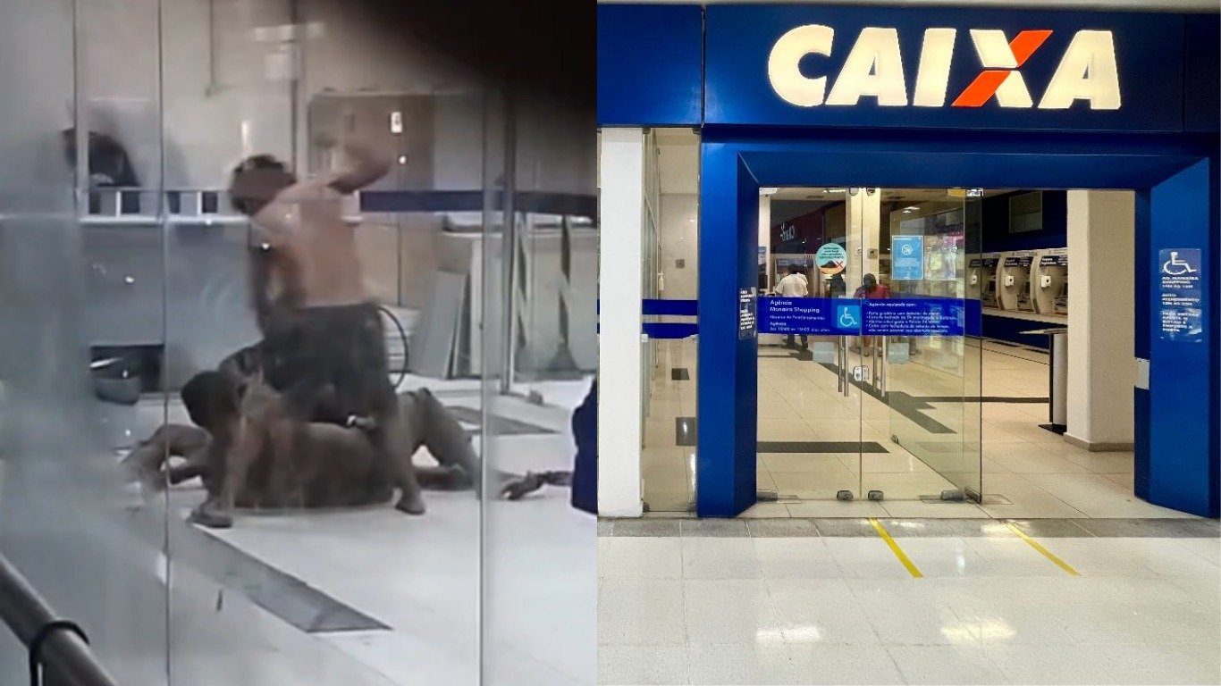 Briga por garrafa de cachaça entre cachaçeiros de rua é flagrada dentro de agência da Caixa em Manacapuru; veja vídeo