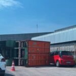 Container tomba e quase atinge carro na Bola da Suframa em Manaus