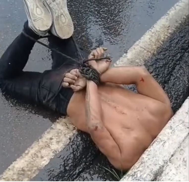 Relatos apontam que, após uma sequência de furtos que vinha aterrorizando comerciantes e trabalhadores da área, a população, já tomada pelo desespero e pela sensação de abandono, decidiu agir por conta própria. O homem teria sido espancado com socos e chutes, amarrado com fios e, em um ato ainda mais chocante, colocado com a cabeça dentro de um bueiro.