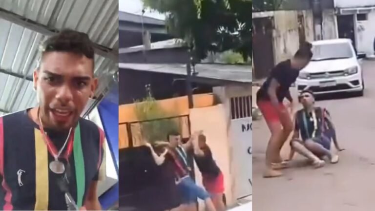 Ladrão rouba celular puxa cabelo de mulher finge estar morto e é acordado na base da porrada; veja vídeo