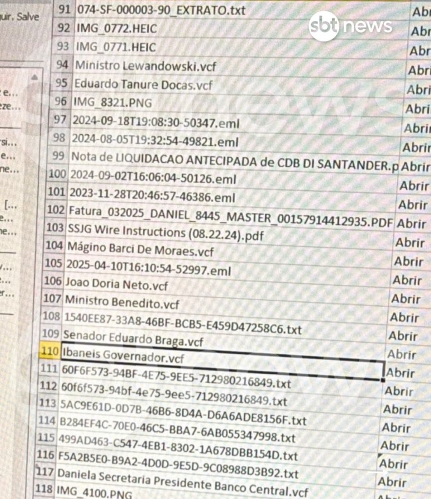 Entre os governadores, figuram na agenda os números de Ibaneis Rocha, do Distrito Federal, e Cláudio Castro, do Rio de Janeiro. O telefone do atual presidente do Banco Central, Gabriel Galípolo, também foi encontrado, assim como o do diretor de fiscalização afastado da autarquia, Paulo Sérgio Neves, que foi alvo da operação policial deflagrada nesta semana.