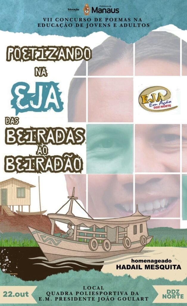 Poetizando na EJA: ” Nas Beiradas ao Beiradão” a Prefeitura de Manaus, por meio da Divisão Distrital Zonal (DDZ) Norte, da Secretaria Municipal de Educação (Semed), realizará, na noite desta quarta-feira, 22/10, o VII Concurso de Poemas da Educação de Jovens e Adultos (EJA), na escola municipal Presidente João Goulart localizada , zona Norte. A ação contará com a presença de mais 300 estudantes de cinco unidades de ensino que trabalham com a EJA na DDZ Norte.