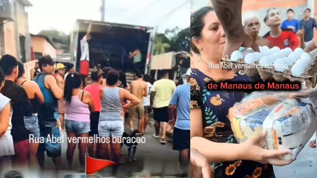 Manaus – Uma ação atribuída à facção criminosa Comando Vermelho (CV), registrada nesta segunda-feira (18), no bairro Cidade de Deus, Zona Norte de Manaus, está repercutindo nas redes sociais. Vídeos mostram supostos integrantes da facção distribuindo cestas básicas e cartelas de ovos para moradores da rua Abel, na comunidade Nossa Senhora de Fátima.