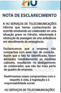 Diante da repercussão negativa, a empresa não demorou a agir. Em nota, a HU Serviços de Telecomunicações informou que tomou conhecimento do caso e desligou o funcionário. “Não compactuamos com esse tipo de conduta”, declarou.