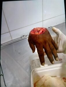 Há a possibilidade de realização de uma cirurgia para tentar reimplantar a mão decepada. No vídeo gravado já na unidade hospitalar, é possível ver o braço da vítima enfaixado enquanto a equipe médica trabalha para estabilizar o paciente e avaliar as chances do procedimento, que exige rapidez para aumentar as possibilidades de sucesso.
