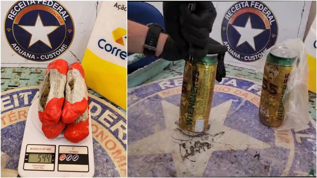 Numa tentativa de burlar a fiscalização e dificultar o escaneamento do pacote, os criminosos utilizaram latas de cerveja para esconder a droga, que também estava envolvida por uma pequena camada de chumbo. Ressalta-se que não haviam marcas aparentes de violação das latas.
