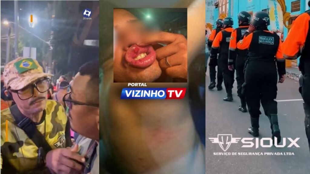 Segundo o profissional, ele filmava uma briga que ocorria no evento, situação registrada também por outros foliões, quando passou a ser alvo da ação dos seguranças. Nas imagens, é possível ver o momento em que os agentes se aproximam e tentam impedir a gravação. Em seguida, um dos seguranças vai por trás do jornalista e desliga a câmera, interrompendo o trabalho mesmo com o repórter identificado, uniformizado e usando crachá.