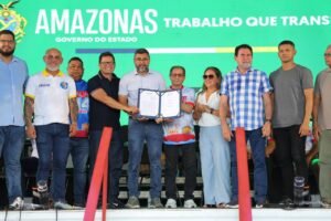 O governador Wilson Lima assinou, neste sábado (27/09), em Carauari, município a 788 km de Manaus, um convênio com a prefeitura para a recuperação do sistema viário, em comemoração aos 114 anos da cidade. O investimento contemplará 28 ruas pavimentadas com concreto armado, incluindo meio-fio e sarjeta, reforçando a parceria entre Estado e município para obras de grande porte.
