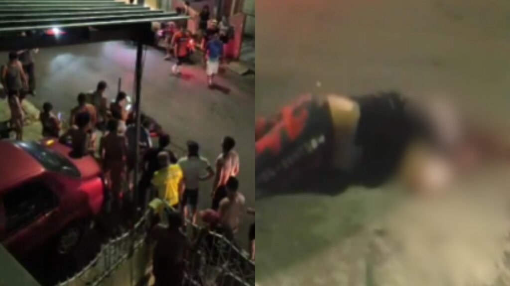 Imagens divulgadas em aplicativos de mensagem registram o cenário depois do crime, com moradores reunidos na via e veículos parados ao redor. O vídeo circula amplamente entre usuários da cidade, ampliando a repercussão do caso nas redes.