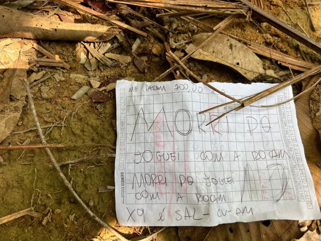 Ao lado do corpo, os policiais encontraram um bilhete escrito à mão com a mensagem, “morri porque joguei com a ROCAM”, o que levanta a hipótese de atuação de facções criminosas que disputam território na região. A Polícia Civil, porém, ainda aguarda análises da Inteligência para confirmar qualquer motivação. A ROCAM, Rondas Ostensivas Cândido Mariano, é uma tropa especializada da Polícia Militar com forte presença em áreas de conflito.