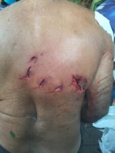 Imagens divulgadas mostram o idoso com ferimentos significativos no braço esquerdo, além de marcas profundas nas costas, provocadas pela mordida do animal. O ataque teria sido rápido e deixou moradores assustados, já que situações desse tipo não são frequentes, mas podem ocorrer principalmente em áreas ribeirinhas.