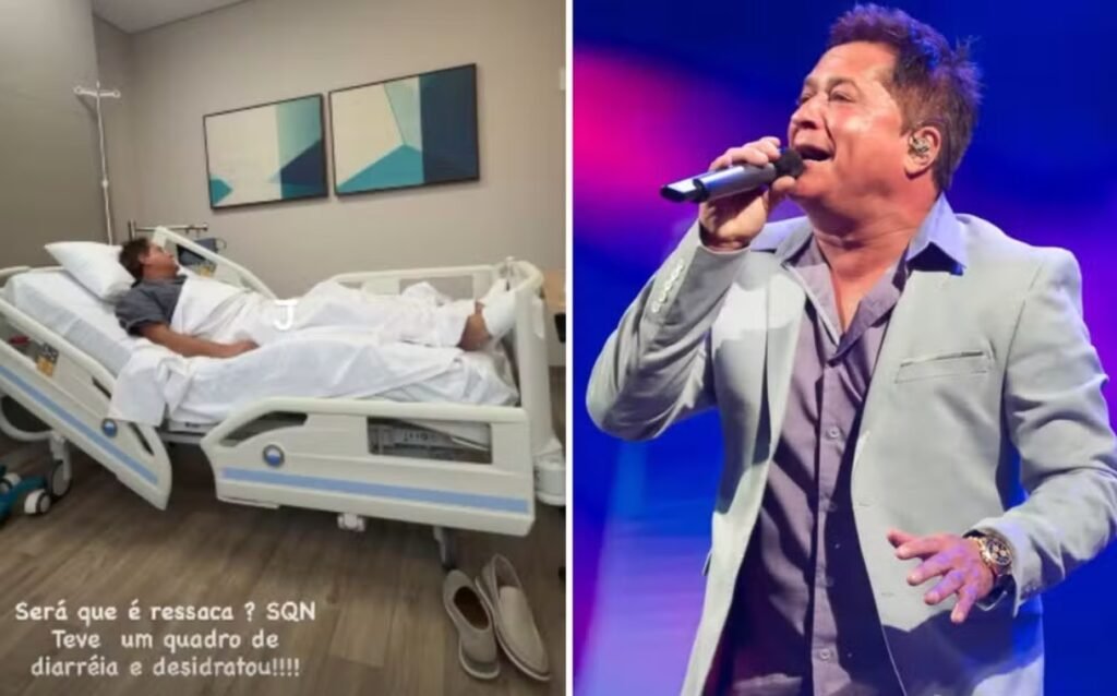 O cantor Leonardo foi internado no Hospital Israelita Albert Einstein, em Goiás, conforme divulgado nas redes sociais por sua esposa, Poliana Rocha. Segundo ela, o artista apresentou um quadro de diarreia, o que levou à desidratação. A publicação foi feita na manhã desta segunda-feira (8) e mostra o cantor deitado em um leito hospitalar, de costas, enquanto Poliana fez uma postagem em tom descontraído.