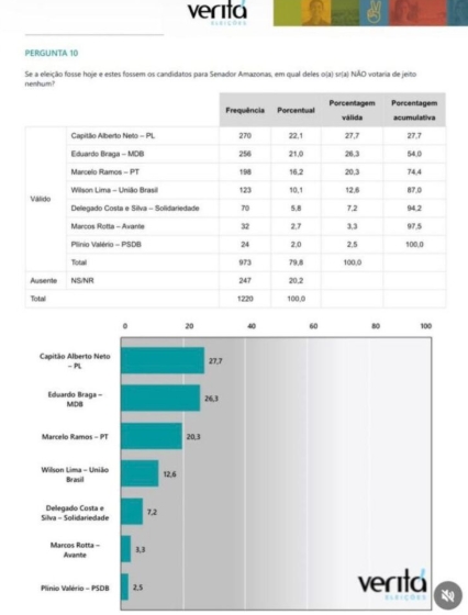 Na tentativa de recuperar o terreno, o petista publicou outro recorte da mesma pesquisa, afirmando estar em terceiro lugar na corrida ao Senado com resultado competitivo, mesmo sem pré-campanha, e defendendo a representatividade de uma candidatura progressista alinhada ao presidente Lula no Amazonas. A manobra, no entanto, não apagou a memória da internet.