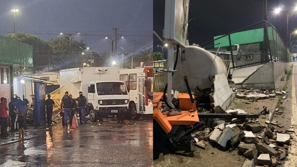 Manaus – Um acidente provocou transtornos no Terminal de Integração 3, localizado no bairro Cidade Nova, Zona Norte de Manaus, nesta quinta-feira (18). Um caminhão invadiu a área do terminal, destruiu um muro e danificou ao menos três veículos que estavam estacionados. O motorista fugiu do local logo após o incidente.