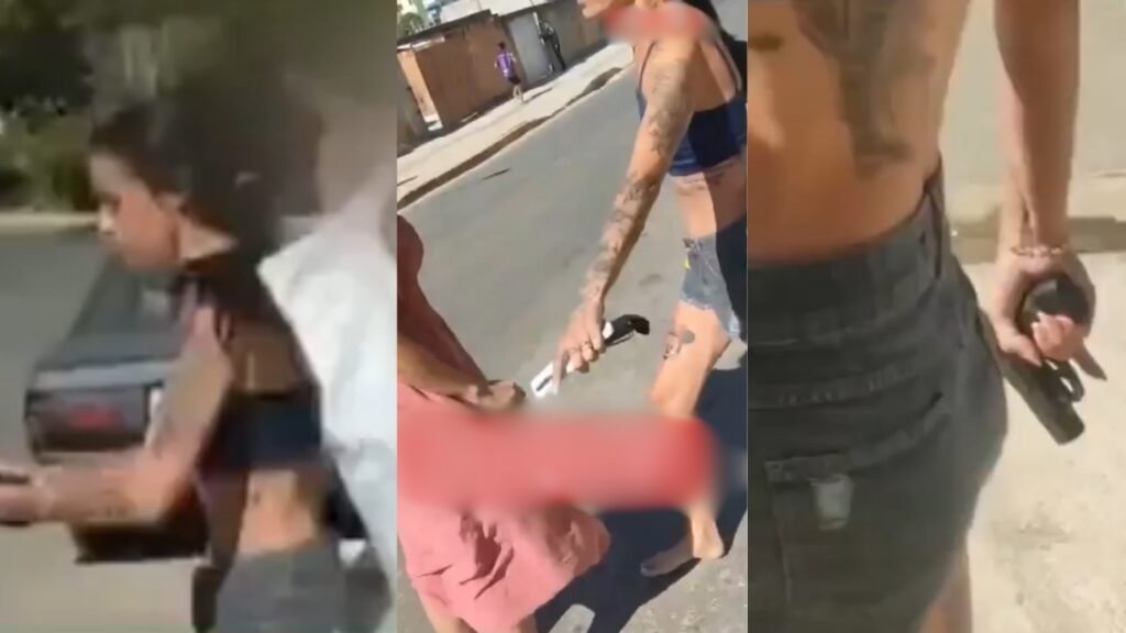 Uma briga entre vizinhas terminou em violência e prisão no bairro Água Branca, em Contagem (MG), na noite do último sábado (6). Um vídeo que circula nas redes sociais mostra Nayara Xavier, de 33 anos, armada com uma pistola, ameaçando e agredindo a vizinha com coronhadas.