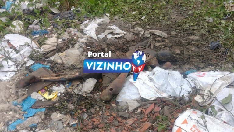 O esqueleto estava com uma das pernas amarradas e penduradas ao pescoço, junto ao lixo e matagal daquela área.