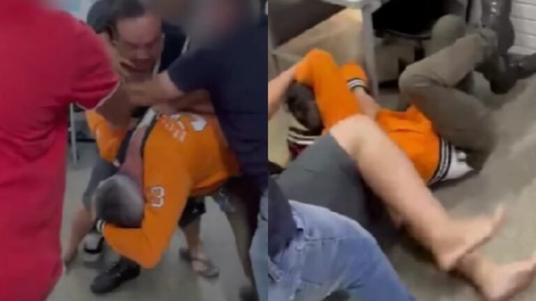 Câmeras de segurança da escola registraram o momento em que o homem invade a sala da coordenação e desfere uma sequência de golpes contra a cabeça do professor. Funcionários da escola tentaram conter a agressão, e, em um gesto inusitado, a própria filha aplicou uma técnica de imobilização conhecida como “mata-leão” para proteger o docente do ataque do próprio pai.