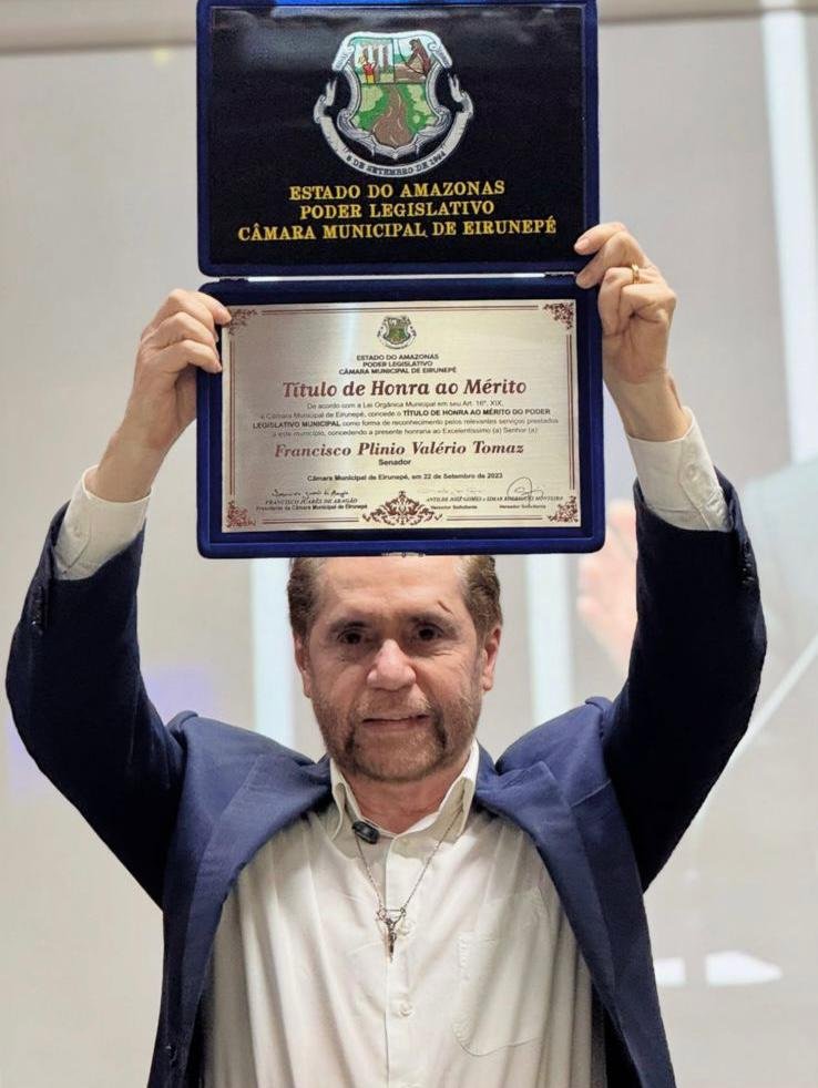 Ao lado do vice-prefeito Amaurílio Tomaz (União), da prefeita Áurea Ester (MDB), vereadores e lideranças comunitárias, Plínio foi recebido na Câmara Municipal, onde recebeu o Título de Honra ao Mérito, proposto pelo vereador Antilde (União), em reconhecimento à sua parceria e contribuições ao município.