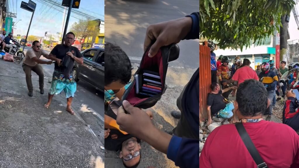 De acordo com testemunhas, o suspeito atuava com um comparsa, que estaria armado com um simulacro de pistola para intimidar as vítimas. Durante a tentativa de fuga, o homem foi alcançado por populares — entre eles mototaxistas — e espancado, cena que foi registrada em vídeos compartilhados nas redes sociais.
