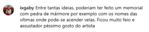 Nas redes sociais, moradores e parentes expressaram sua frustração, sugerindo alternativas mais respeitosas, como um memorial com pedras de mármore, nomes das vítimas gravados e espaço para acender velas. Para eles, seria uma forma de prestar homenagem de verdade, em contraste com o gasto milionário em festas e eventos da cidade, enquanto o mínimo para memória das vítimas foi negligenciado.