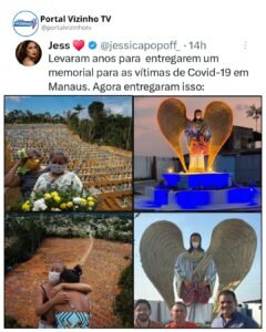 No entanto, o que gerou revolta entre os familiares das vítimas foi a aparente falta de cuidado na execução da obra. Muitos consideram a escultura “meia boca”, lembrando que a Prefeitura investe milhões em grandes eventos passageiros, enquanto um memorial digno para as vítimas da pandemia parece ter recebido atenção e recursos mínimos.
