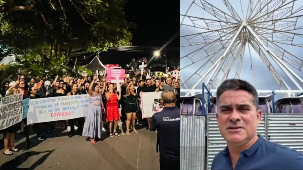 Manaus (AM) – Professores da rede municipal de ensino realizaram um protesto, na noite desta quinta-feira (20), no Complexo Turístico da Ponta Negra, zona Oeste de Manaus. O ato, denominado panelaço, ocorreu paralelamente à cerimônia de inauguração da roda-gigante instalada pela Prefeitura no local.