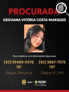 POLÍCIA – A Polícia Civil do Amazonas divulgou as imagens de três suspeitos procurados por envolvimento em uma série de roubos e comercialização ilegal de celulares em Manaus. São eles: Adriel Costa Cardoso, de 22 anos; Genilson Araújo de Moraes, de 37; e Geovana Vitória Costa Marques, de 21 anos.