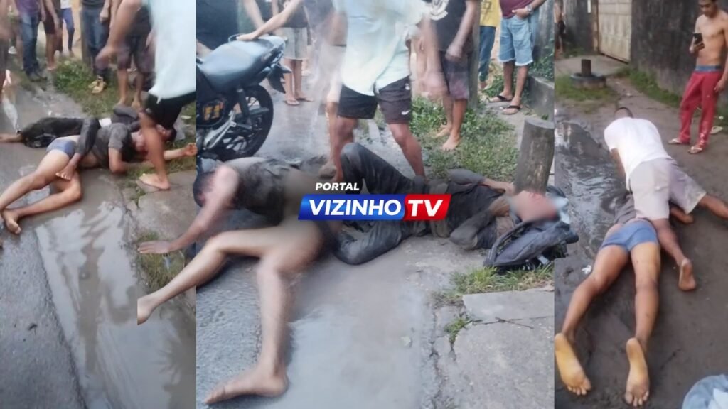 Os suspeitos foram engolidos por uma multidão tomada pelo ódio acumulado de tantos roubos em Manaus. O “castigo” foi bruto, humilhante e filmado por dezenas de celulares: puxões de cabelo, pisões na cabeça, socos, chutes e até afogamento na água suja de esgoto que escorria pela sarjeta, uma cena que mais parecia linchamento medieval em plena rua.