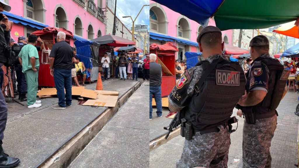 Manaus (AM) – Um homem, ainda não identificado, foi brutalmente executado a tiros na tarde desta quarta-feira (23), na rua Marcílio Dias, no Centro de Manaus. O crime ocorreu entre as bancas de comércio popular da região.