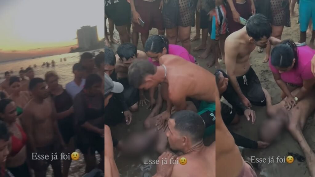 Veja o momento que populares tentar reanimar banhista que morreu afogado na Ponta Negra em Manaus